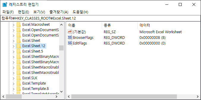 HKEY_CLASSES_ROOT\Excel.Sheet.12