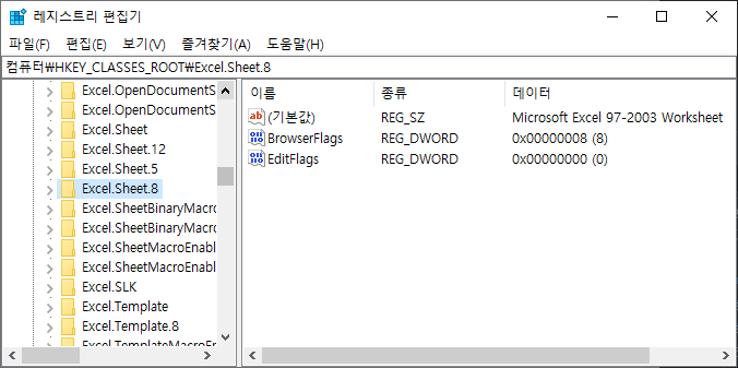 HKEY_CLASSES_ROOT\Excel.Sheet.8