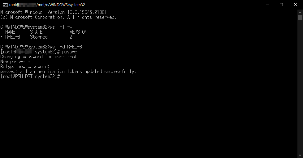 wsl -d RHEL-8