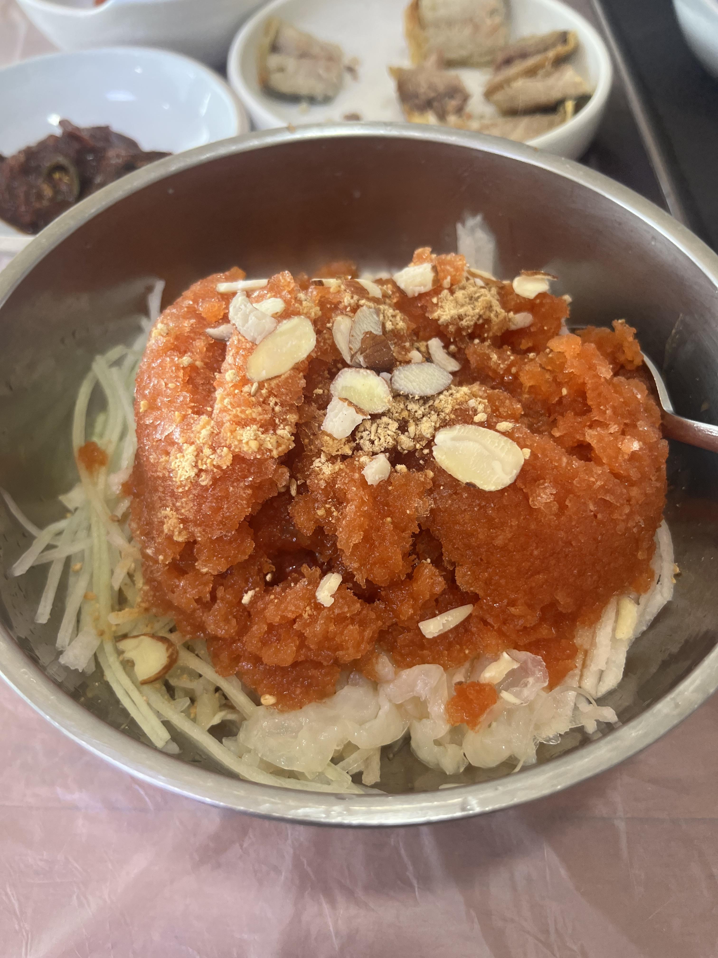 나는 회덮밥을 먹었는데, 김에 회덮밥과 해조률 싸먹어도 아주 맛있다.