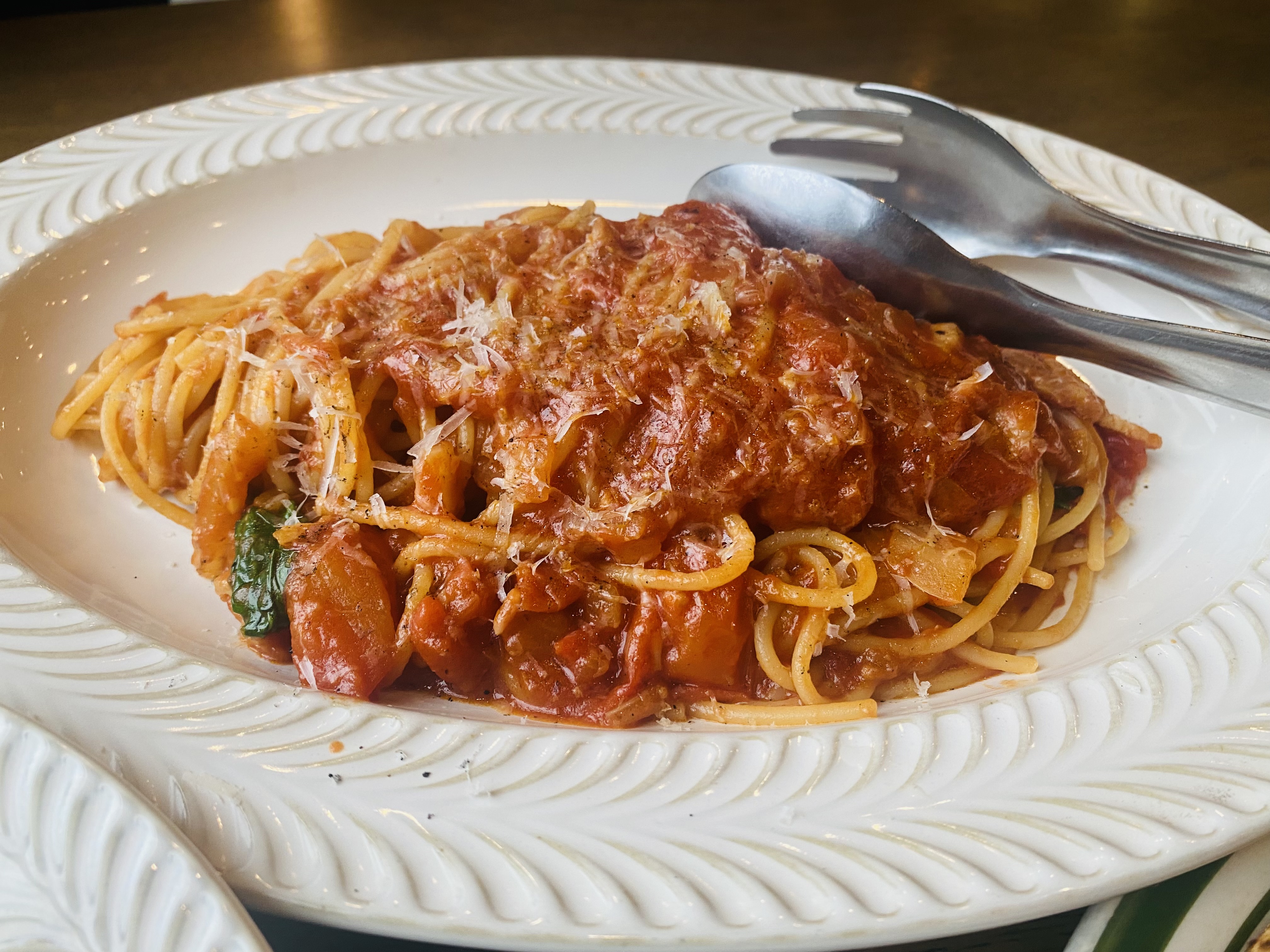 토마토 소스의 새콤달콤한 맛이 일품이며, 면발은 탱글탱글하고 부드러운 식감이 특징이었다.